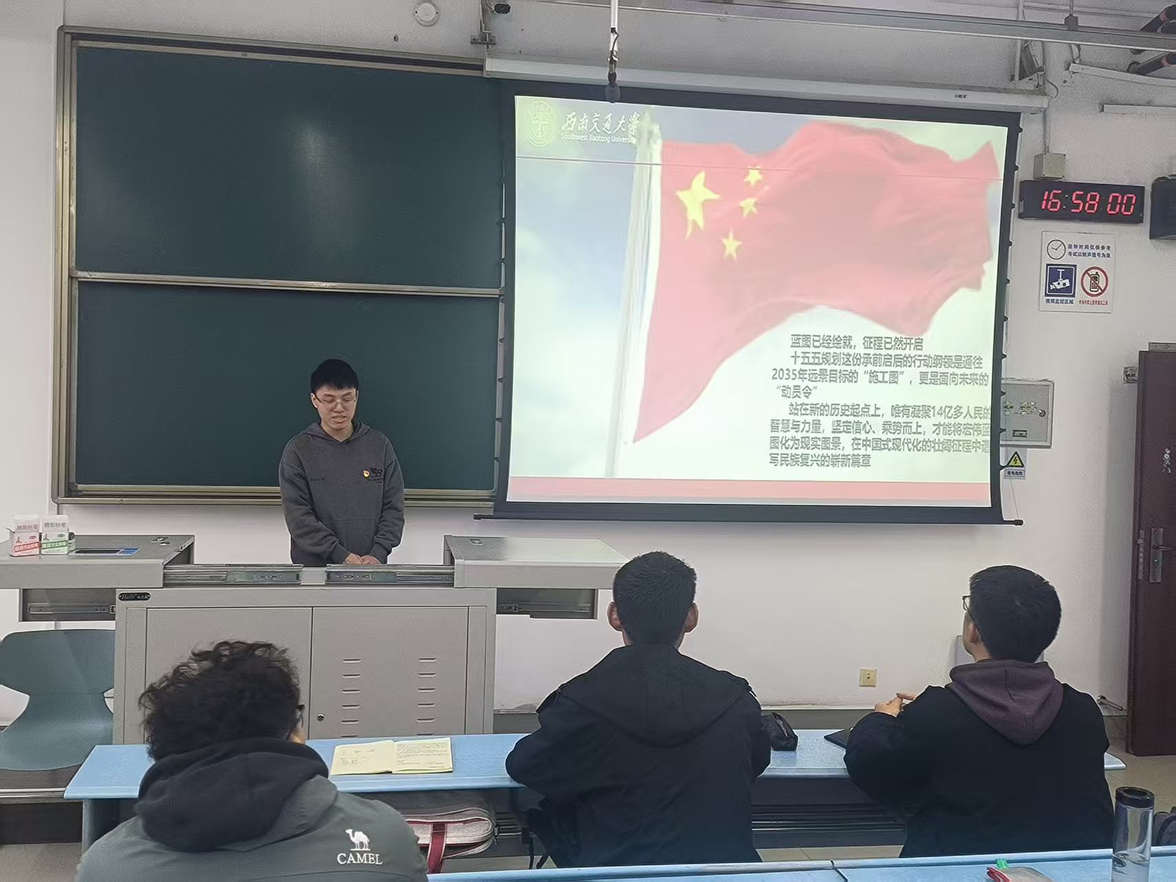 2025年11月06日星期四,本科学生第六党支部在犀浦校区2号教学楼X2423深入学习贯彻习近平总书记关于教育的重要论述,以教育强国支撑引领中国式现代化,学习贯彻党的二十届四中全会精神,结合党员思想实际和学习工作实际开展交流研讨。会议由于浩然同志主持。