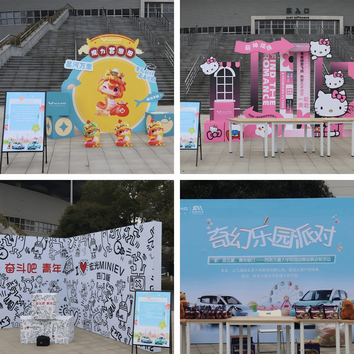 为促进交大学子高质量就业,提供了解企业、熟悉企业的“面对面”交流机会,由西南交通大学团委、上汽通用五菱汽车股份有限公司主办,西南交通大学机械工程学院承办,机械工程学院学生会组织的“‘职’面五菱,青年畅行——西南交通大学校园招聘品牌进校活动暨五菱奇幻乐园派对游园活动”于2025年3月10日在西南交通大学犀浦校区体育馆东入口举行。