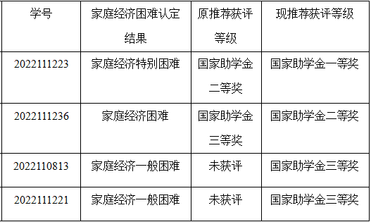 根据学校《关于开展2025-2026学年本科生国家助学金评选的通知》和机械工程学院《关于开展2025-2026学年本科生国家助学金评选的通知》相关要求,因学院本科生国家助学金名额变化,现依次递补4名本科生国家助学金拟推荐人选,递补人员信息公示如下: