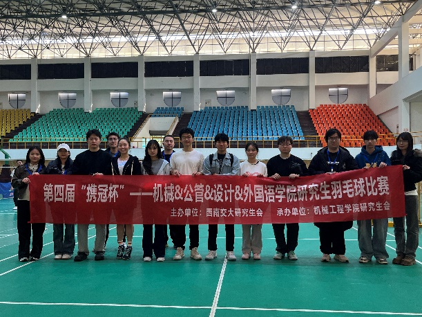 近日,由西南交通大学机械工程学院研究生会主办的第四届“携冠杯”研究生混双羽毛球赛在詹天佑体育馆圆满落幕。为期两天的赛事中,来自机械工程学院、公共管理学院、设计学院与外国语学院的24支参赛队伍以球会友、奋勇拼搏,在赛场之上挥洒青春汗水,在协作之中凝聚团队力量,不仅为校园文化生活注入了鲜活活力,更搭建起四院研究生交流共进的坚实桥梁。