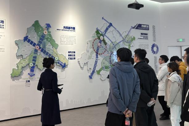 下午,师生们前往德阳市规划馆进行参观。通过丰富的图文资料、沙盘模型和多媒体展示,同学们全面了解了德阳市的历史沿革、城市总体规划、产业发展布局以及未来建设蓝图,深刻感受到这座工业名城的历史底蕴与蓬勃生机,对其作为成渝地区双城经济圈重要节点城市的发展前景有了更直观的认识。