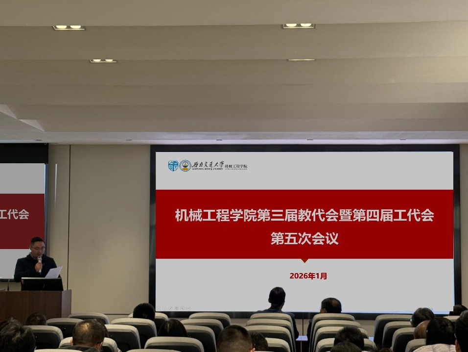 2026年1月4日下午,机械工程学院2025年全院教职工大会、学院第三届教代会暨第四届工代会第五次会议在九里校区机械馆2530报告厅召开,学院全体教职工参会。