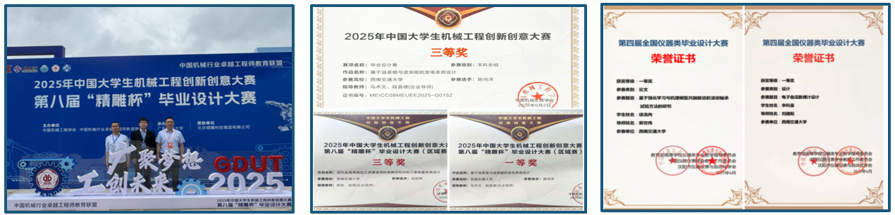 ⑦本科毕业设计获全国仪器类毕业设计大赛全国一等奖2项,“精雕杯”全国三等奖1项、西部区域赛一等奖1项。