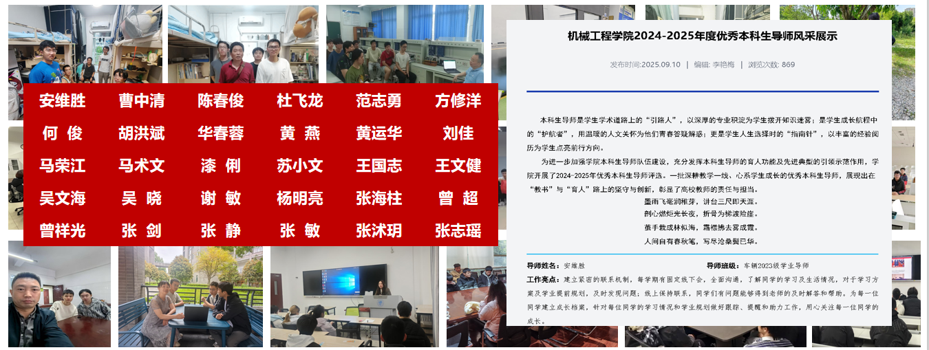 (5)树立标杆,优秀班级导师榜样引领。在教师队伍建设方面,学院注重 “树立标杆”,推选表彰首批30名潜心育人、成效显著的优秀班级导师,发挥其榜样引领作用,营造爱岗敬业、厚生育人的良好教风。
