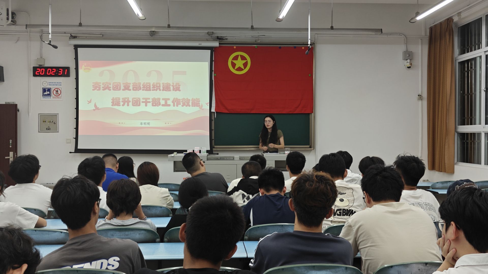 19:00,培训活动准时拉开帷幕。首先,学院“青年讲师团”讲师、团建中心指导老师奉明明立足学院团学工作实际情况,围绕团支书作为团支部“领头人”的核心定位展开分享。她着重强调,团支书是连接团组织与青年团员的关键纽带,其履职效能直接关系到基层团组织的凝聚力与战斗力。她鼓励全体新任团支书以饱满的热情、务实的作风投入工作,主动凝聚班级青年力量,积极策划并组织富有吸引力的团务活动,在班级团组织中真正发挥“领头羊”作用,切实将团支部打造为引领青年成长、服务青年发展的坚强阵地。